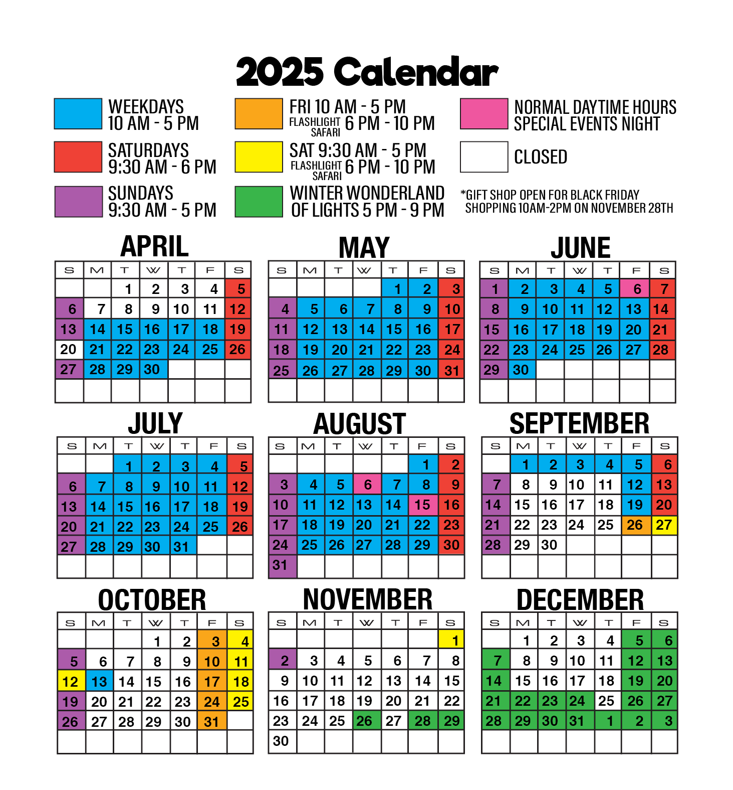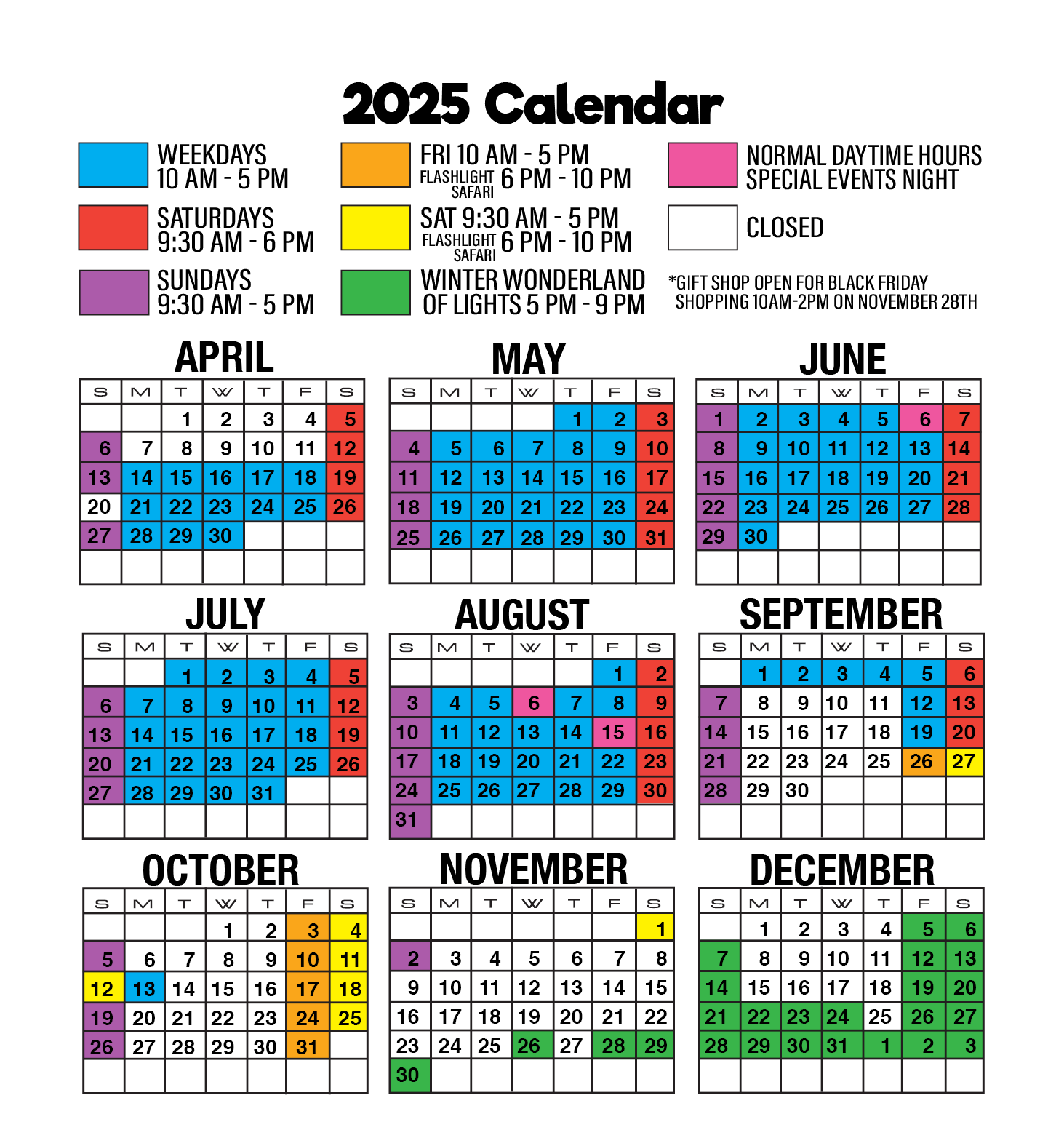 - No outside food or drink for human or animal consumption allowed within the park. This is to maintain the health and safety of our animals.